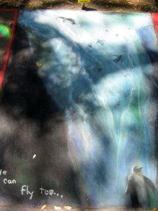 Made in my 2nd year, 2004. Penguins underwater making the most with what they have.