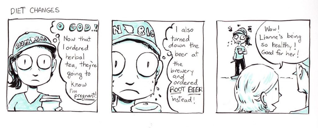 #Inktober Day 24: The week I found out I was pregnant was the same week I was running in the Hood to Coast Relay (a 199 mile relay race done over the course of 2 days in Oregon) with my co-workers and family friends. Now that I was more conscientious about what I ate/drank, I was so worried that someone would suspect that I was pregnant, especially since I was going to be in a van with them for 48 hrs…but in the end, I was just paranoid!