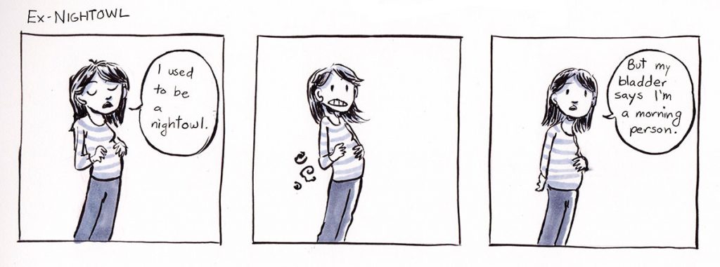 #Inktober Day 28: I’ve heard all the stories of sleeplessness when the baby finally comes, but no one stressed how pregnancy symptoms consistently wake you up at 4am throughout it. My heart goes out to the women who have worse symptoms than I.