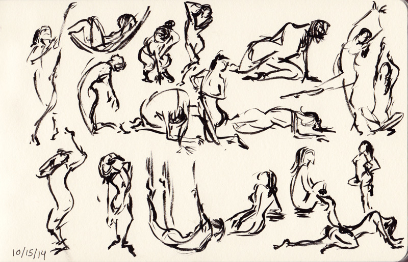 #Inktober Day 15: Trying to loosen up doing Internet gesture drawing with this great online tool, Figure Drawing Practice. Of course, it’s not a substitute for the real thing, but this is nice if you’re too busy to make it to those sessions.