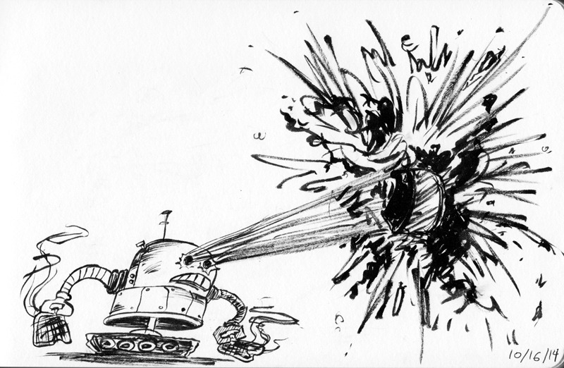 #Inktober Day 16: My friend, Dave, mentioned robots and explosions…so this is what happens when the toaster burns a robot’s toast.