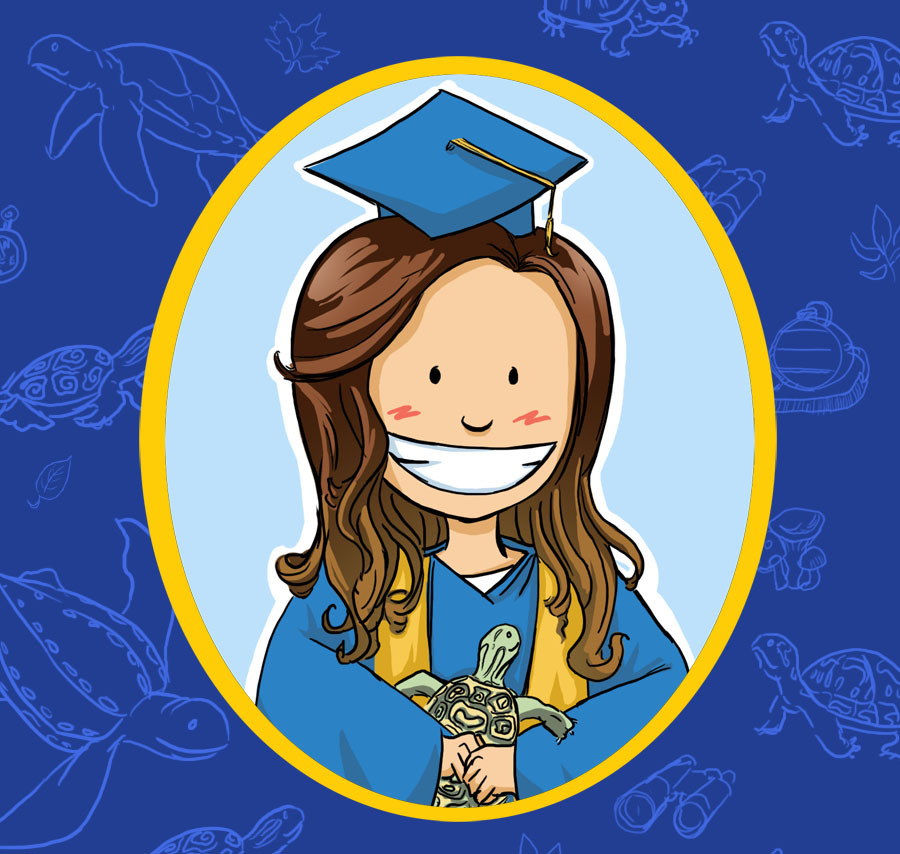 A couple weeks ago, my youngest sister graduated from college. I did a doodle of her for a custom chocolate bar wrapper my Mom wanted to give away for her grad party. She’s a Wildlife Conservation major and is going to be assisting in a couple sea turtle research projects including one in Costa Rica! How cool is that?!