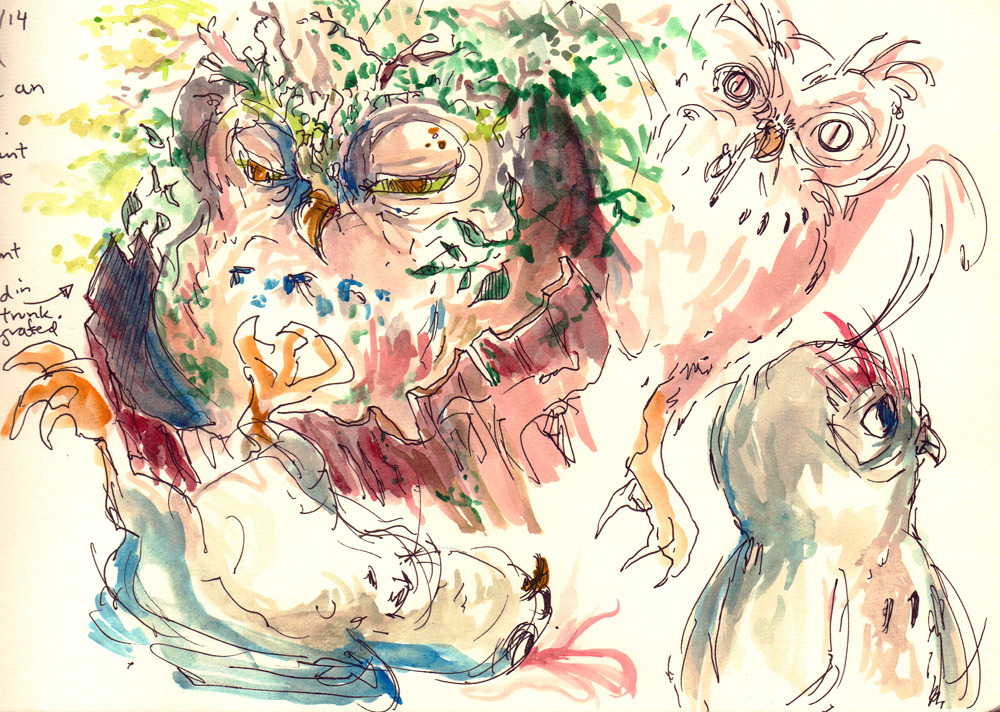 A few weeks ago, my sister sent me this adorable video of baby sloths. We had this discussion on the silly appearance of sloths and how they move so slow that moss grows on them. So here’s a few quick sketches of overgrowth on a sloth.