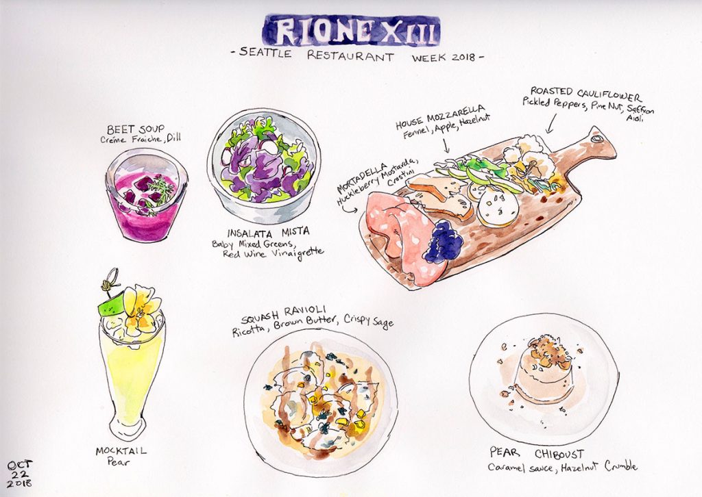 #Inktober Day 22: Yesterday, my husband and I ate at Rione XIII, known for their Roman inspired cuisine, for Seattle Restaurant Week. It was amaaaazing.