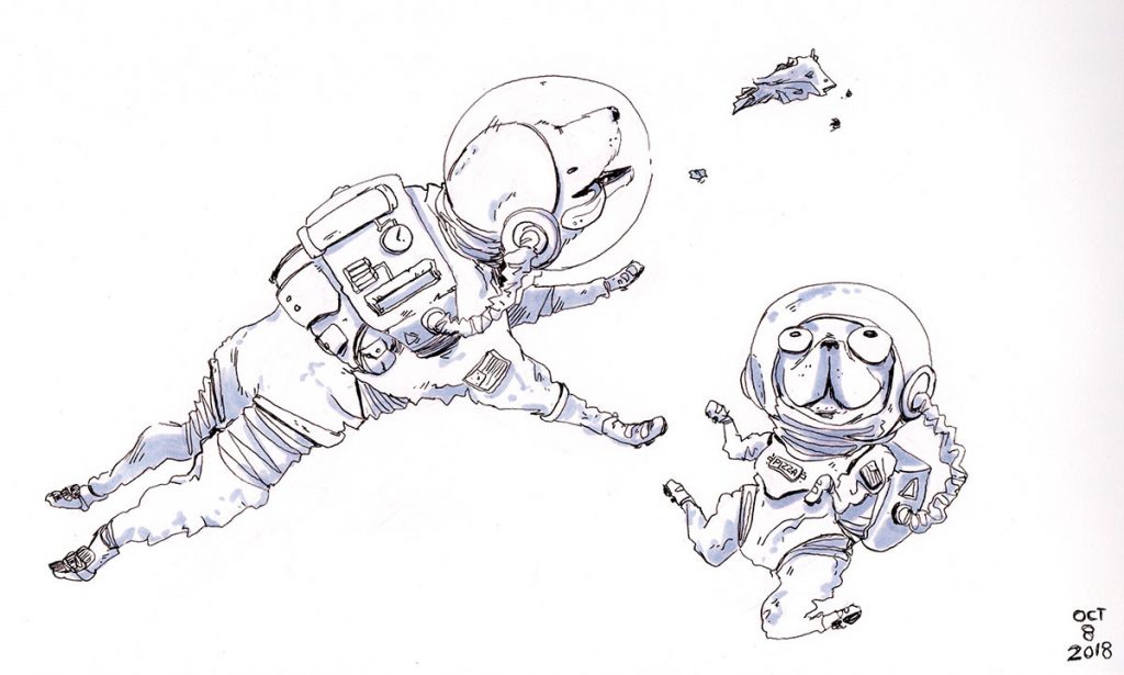 We found this hilarious hipster costume for my dog this Halloween, so here’s a drawing of my hipster dog making artisanal Halloween biscuits.