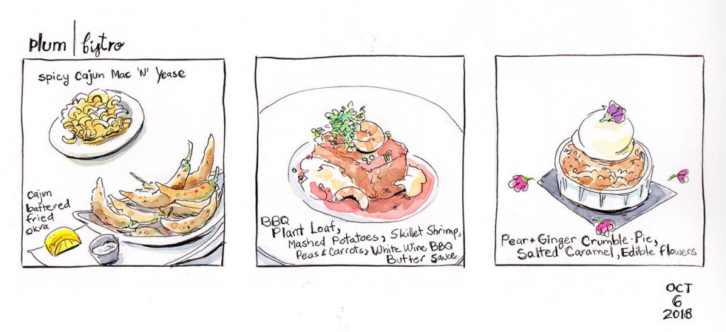 #Inktober Day 6: Last night we had some good food at a vegan restaurant called Plum Bistro with some friends who were visiting from out of town. The creativity of the dishes was impressive!