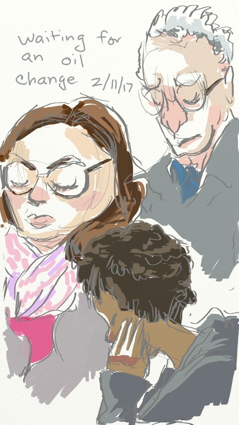 Gesture drawings of some T-mobile employees drawn on my cell phone. I upgraded my phone to a Galaxy Note 5, and oh my goodness, I’m in love. The stylus uses a Wacom digitizer and has enough resistance it feels nice to draw with. ArtRage is also a great, intuitive art app when on-the-go.