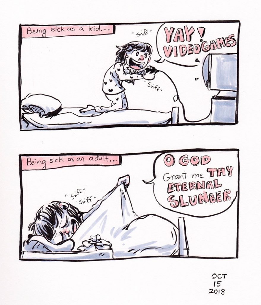 #Inktober Day 15: I was home sick today, and I definitely remember it being more fun as a kid.